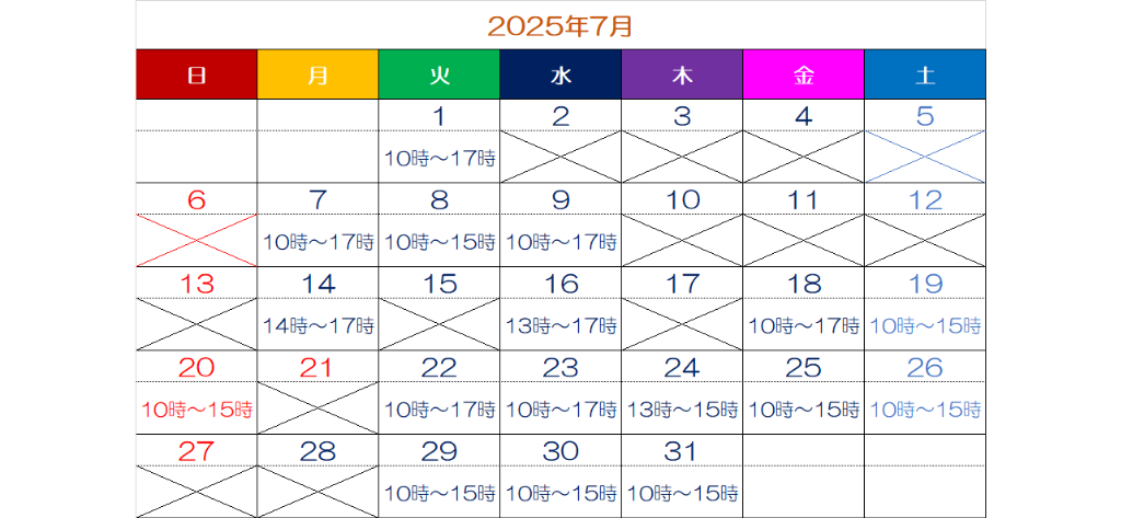 4月28日~30日と、5月の営業日と営業時間のお知らせです。