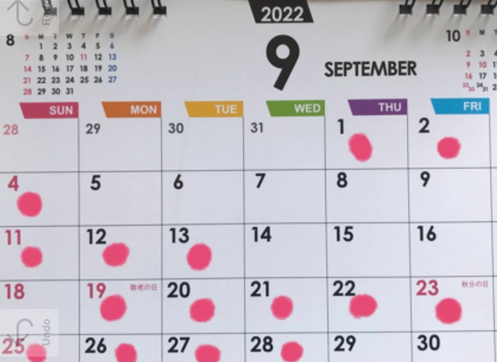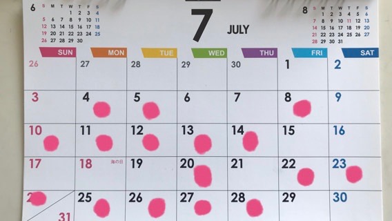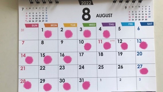 8月は、カレンダーのとおりです。ピンクの○が営業日です