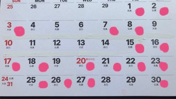ピンクの○が営業日です。