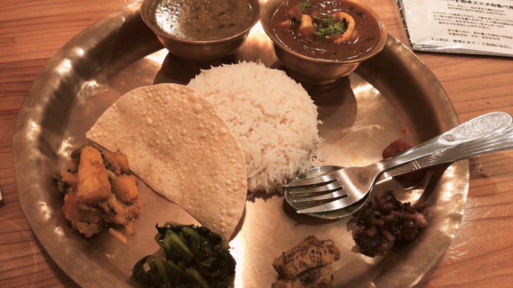 近くのカレー屋さんに行きました。南インドはナンではなくて、ライスです。