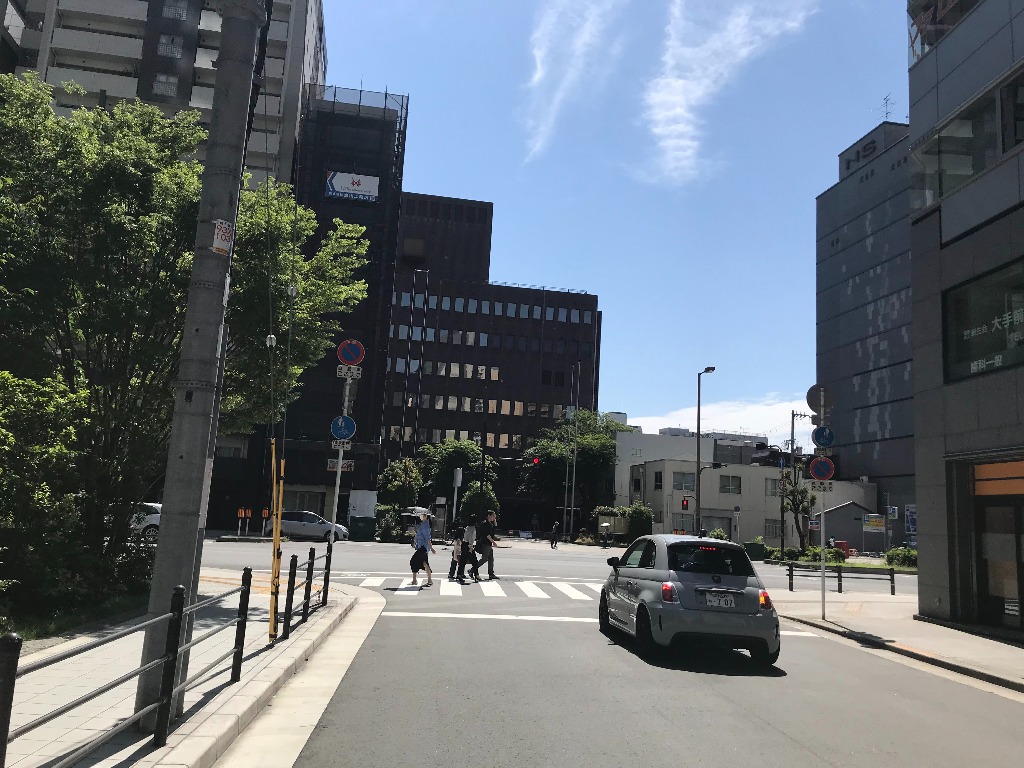 1枚目は東向き。谷町筋の向こうには、大阪法務局の建物が見えています。