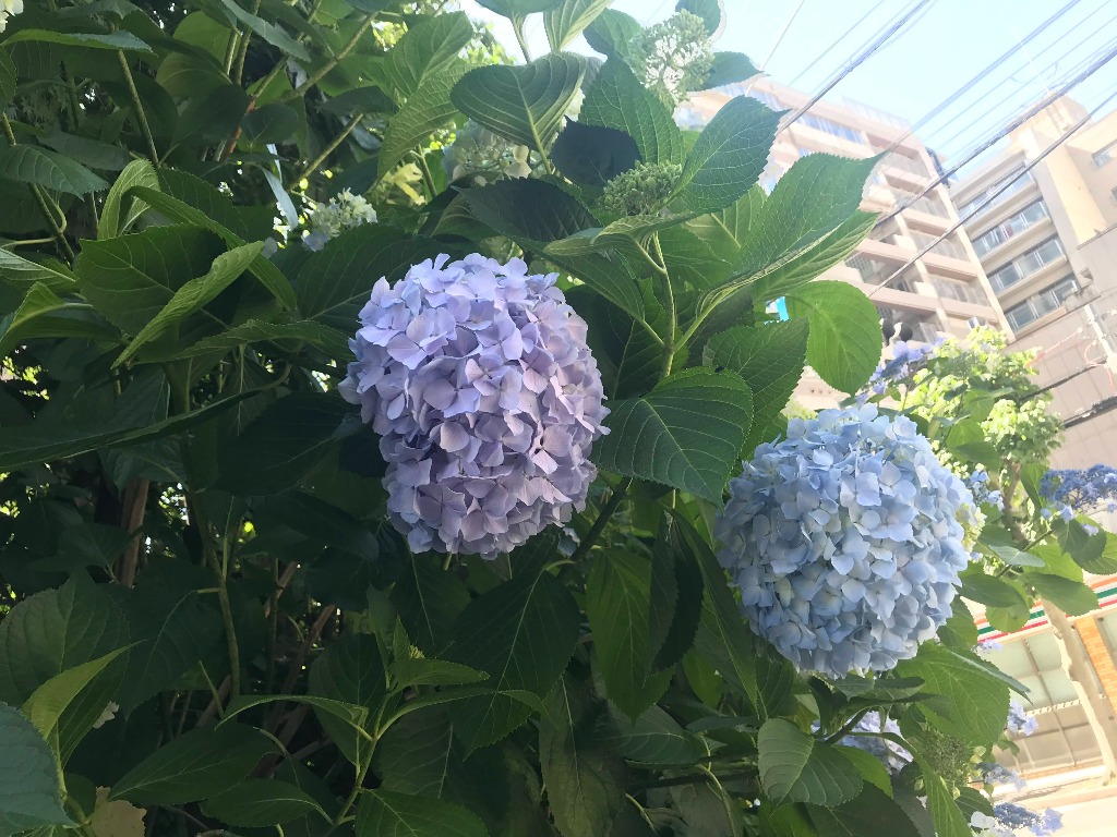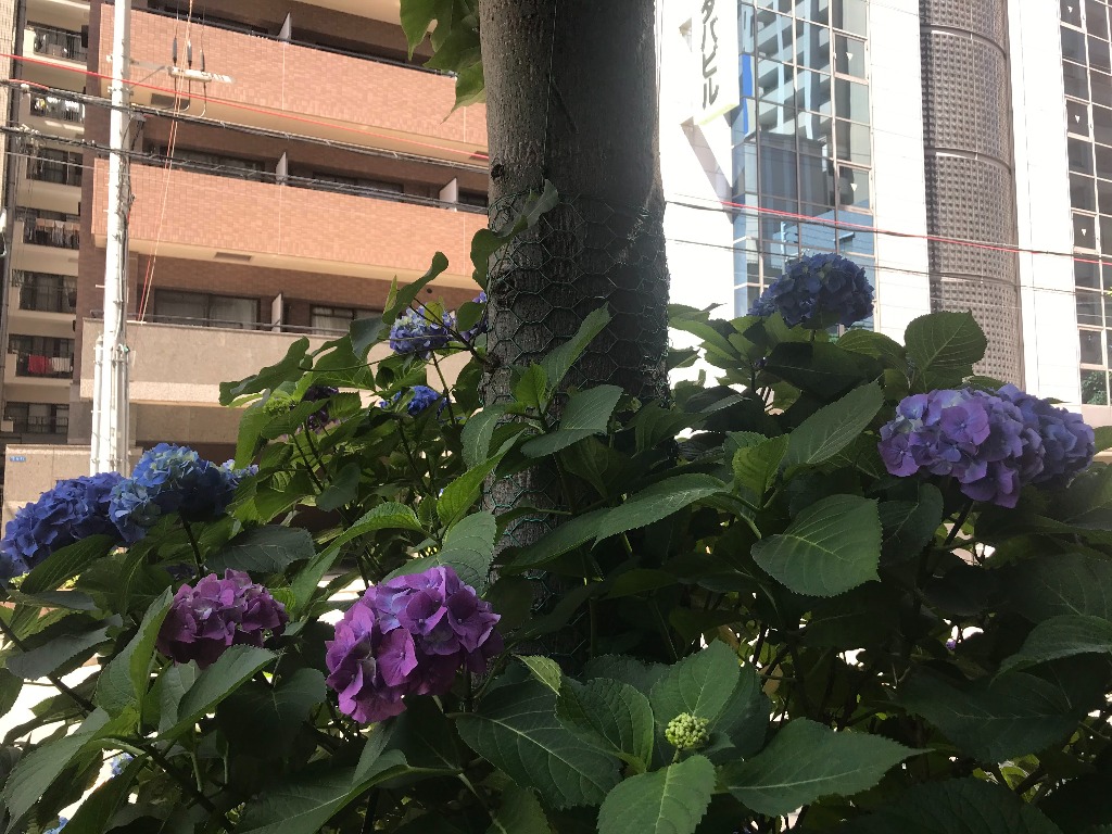 お昼に少し時間が空いて、大手通りの自然食品店に行く途中、紫陽花を見かけました。