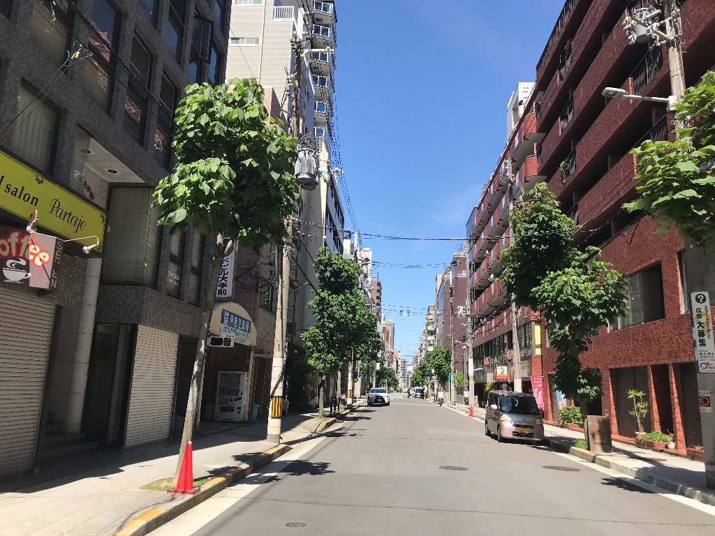 温石薬石整体天満橋は、大阪市中央区内平野町の通りに面したグランドメゾン大手前の9階にあります。内平野町の南には、内淡路町の通りがあり、さらにその南に大手通りがあります。