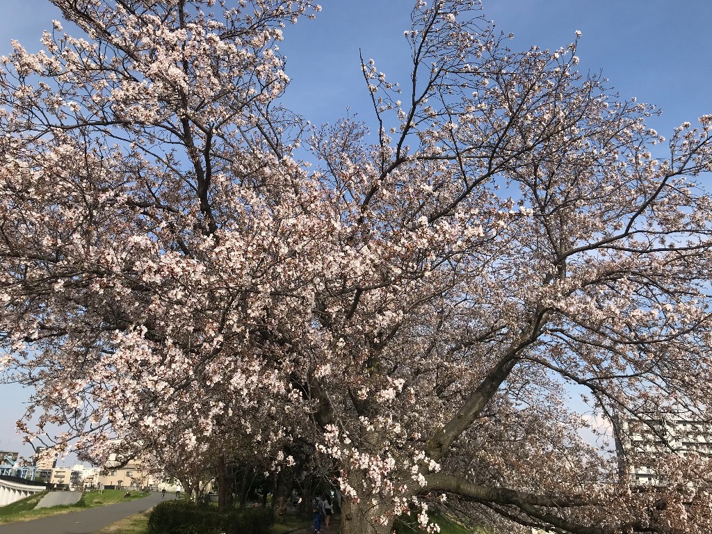 写真は毛馬閘門近く、淀川の堤に咲く桜です。