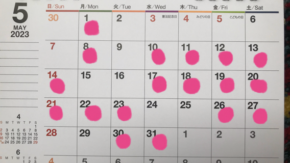 5月の営業日のお知らせです。日差しが強くて、暑いかもと思って薄着をしたら、後から寒くなって困る、というような日が続いています。温度調節に気を付けてお過ごしください。